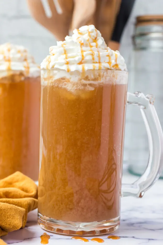3. Divide the butterbeer mixture between four glasses and top with a generous dollop of the butterscotch whipped cream. Drizzle extra butterscotch topping over the whipped cream if you would like.